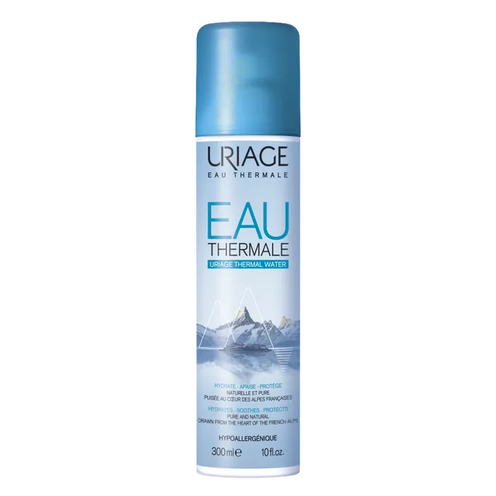 A quelques mètres de la source dans un centre de production ultra-moderne, le spray est conditionné à la source, en salle stérile, sans conservateur, sans parfum et conserve ainsi toute la richesse naturelle et la pureté de l’Eau. Le spray d’Eau Thermale de URIAGE, c’est l’eau de soin idéal pour une cure d’oligo-éléments et de sels minéraux au quotidien quel que soit le moment, quel que soit le besoin. – Une eau de soin qui soulage Rougeurs, irritations, érythèmes fessiers, petits traitements chirurgicaux, démangeaisons, coups de soleil, problème de rasage pour les hommes. – Une eau de soin qui protège et hydrate Au quotidien, après le démaquillage, profitez de son action anti-radicalaire. De plus, ses propriétés filmogènes et hydratantes laissent la peau particulièrement douce et veloutée. – Une Eau de soin qui rend la peau plus belle Son utilisation au quotidien permet à la peau de retrouver tout son éclat et sa vitalité. – Une eau de soin qui rafraîchit et fixe le maquillage En voyage, après le sport, au moment de sortir… l’Eau Thermale d’Uriage procure du bien être au quotidien.
